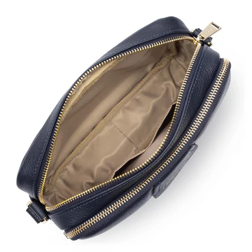 Le dune en format camera bag en cuir de vachette pleine fleur, il est souple et simple a porté. Grainé donc très peu d’entretient.