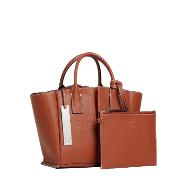 Grand sac cabas avec pochette amovible, miroir de courtoisie et marquage Le Tanneur ton sur ton. Doublure suède en microfibre. Porté main ou épaule. Peut contenir un ordinateur 14″.