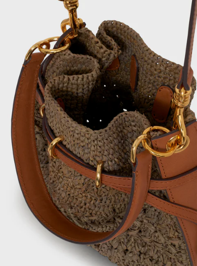 Le MINI ROMY, réinterprétation audacieuse du sac seau déjà iconique en format mini, marie subtilement modernité et tradition. Sa structure novatrice, avec un montage original, crée un contraste délicat entre le soufflet en cuir et le corps en raphia souple.